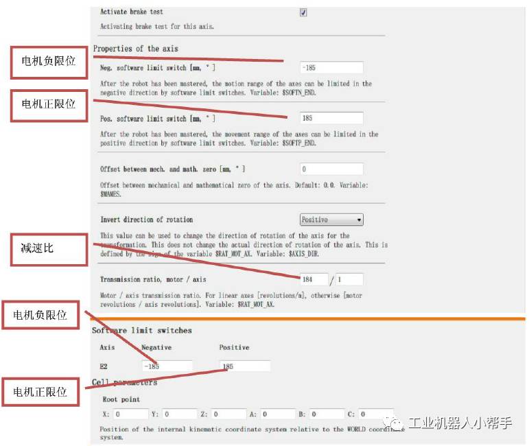 參數(shù)主要有限位,電機轉向,軸的類型,減速比等參數(shù)